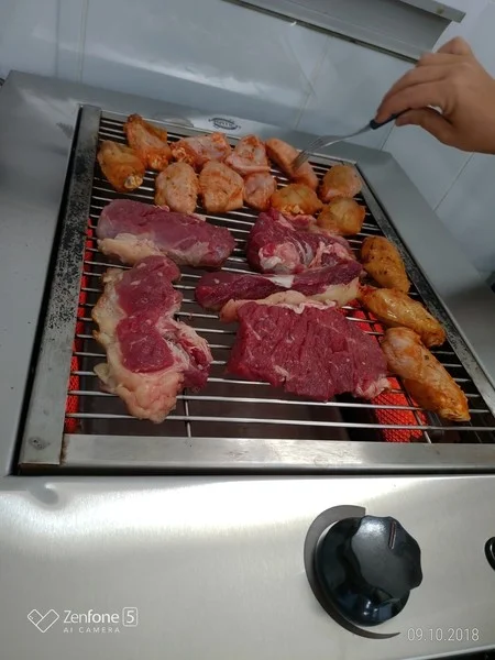 - Carne bovina, frango, porco e cordeiro são ótimas opções. Além disso, legumes grelhados complementam perfeitamente a refeição.